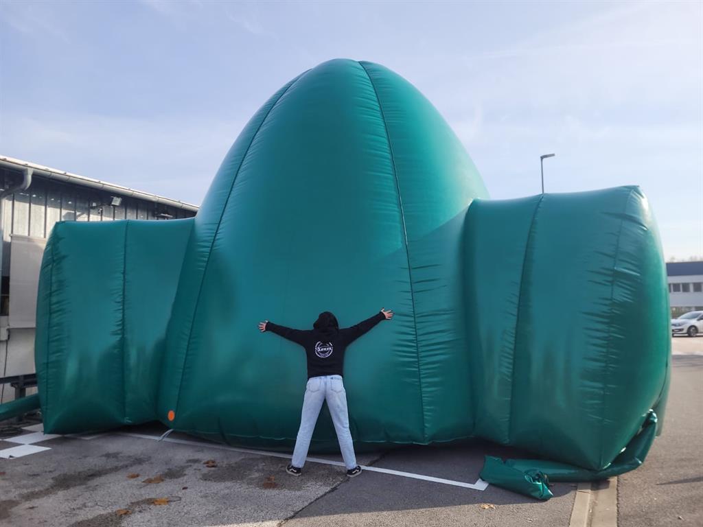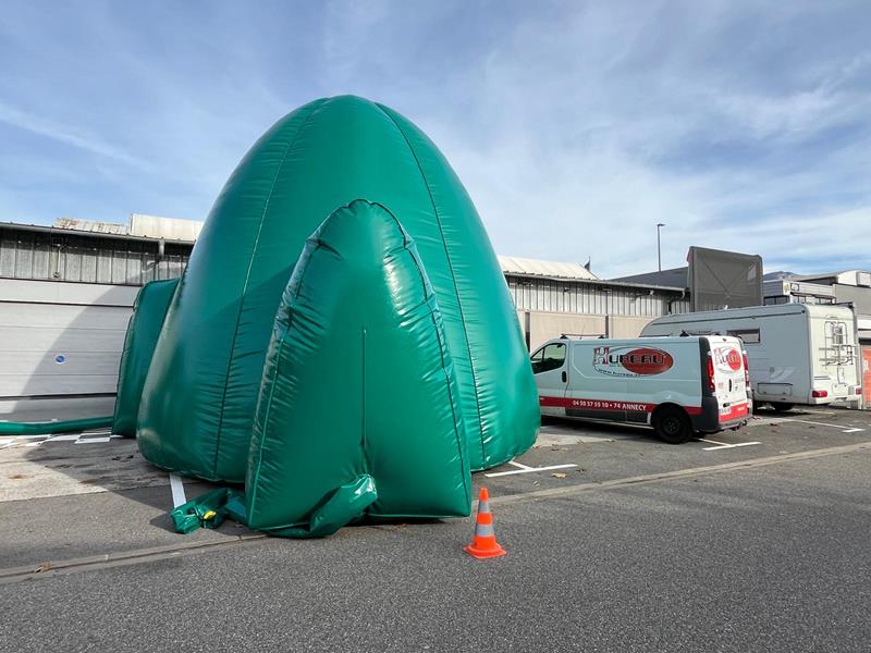 Vous avez peut-être eu la chance de le voir en vrai : notre immense moule à Igloo collection hiver 2025-2026 est officiellement sorti !Comme chaque année, la SARL Hureau vient de réaliser un dôme en bâches PVC qui sert de moule à la création d’igloos en station de ski : une confection délicate qui nécessite un savoir-faire mêlant soudure et couture. Un défi que nos techniciens Bâche ont pu relever grâce au soutien technique de notre partenaire privilégié Chas Sellier.Après les dizaines d’heure nécessaires à la confection, vient s’ajouter l’anxiété de la phase de gonflage afin de vérifier l’étanchéité du moule mais c’est de nouveau une mission réussie pour nos équipes puisque la structure est restée parfaitement gonflée lors du test auquel nous avons procédé devant l’atelier la semaine dernière. Bravo à tous !👏